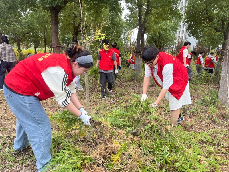 在劳动环节,师生分工协作:有的手持镰刀清理一枝黄花,有的弯腰拔除顽固根茎,还有的将清理出的一枝黄花集中堆放。从教室到田间,从理论到实践,同学们深刻体会到‘一粥一饭当思来之不易’的含义,更感受到劳动中团结协作的力量。