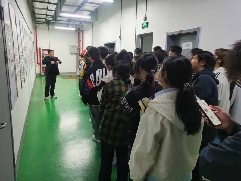 在16号楼开闭所高压配电房,在水电中心工作人员的引导下,同学们遵守电房安全管理的注意事项前提下有序进入,参观并听取讲解。“电房是整个长山校区的电力中枢,外部电网的高压电10千伏通过变压器转换为220V/380V的电压,再通过配电柜分配到每栋楼、每个楼层……”,技术人员强调:“电房属于特种设备区域,非专业人员严禁触碰任何开关或设备,日常运维由持证电工定期检查。”