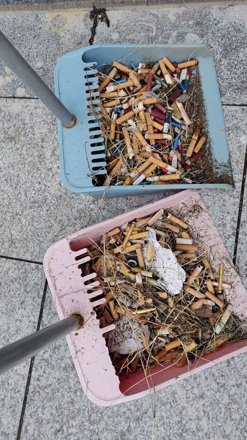 大家聚焦宿舍楼前下水道口、主次通道、绿化带草丛等易积存垃圾、藏匿烟头的死角区域,俯身弯腰、细致搜寻。面对缝隙中难以捡拾的烟头,大家用火钳小心夹取;对散落各处的纸屑杂物,及时清扫收纳。不放过一处角落、不留下一个隐患,原本散落的烟头被逐一清理,宿舍楼周边环境焕然一新。